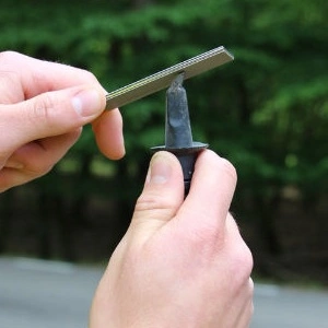 - Använd varmluftspistol (eller fön) för att mjuka upp limmet på plasthöljet på den existerande spetsen på staven. Alternativt stoppa ner spetsen i kokande vatten. Värm försiktigt och vrid av plasthöljet med en tång.