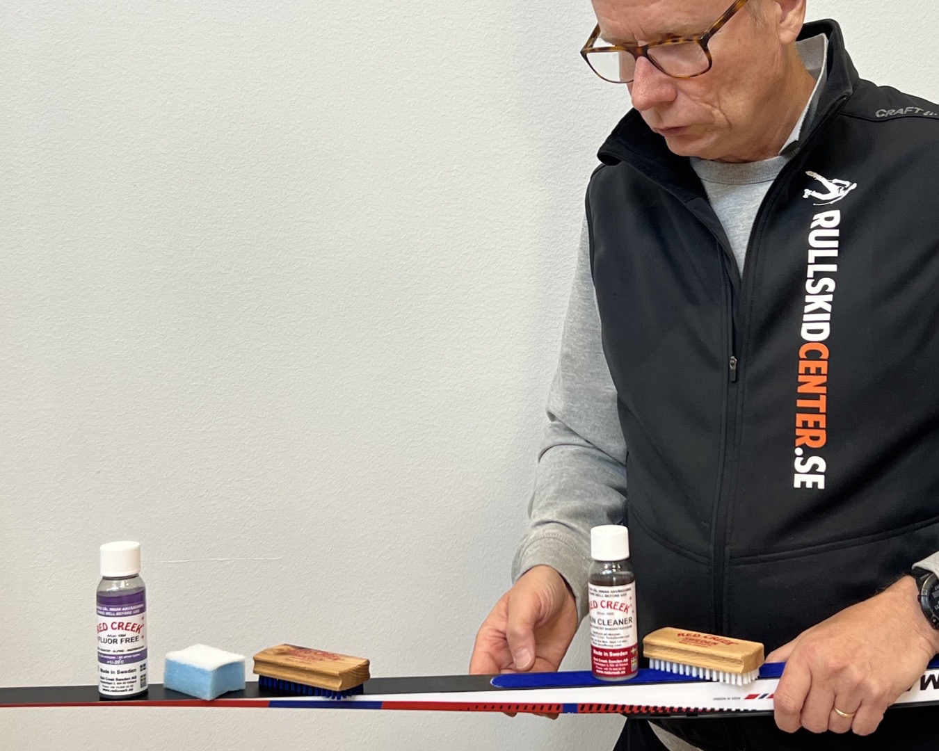 Sen lägger du på glidvallan på de svarta glidytorna och låter det torka. Därefter kan du ställa in dem för förvaring på ett ställe med en jämn och normal temperatur.