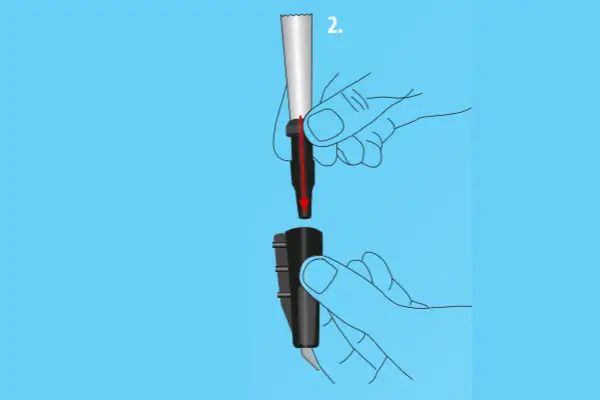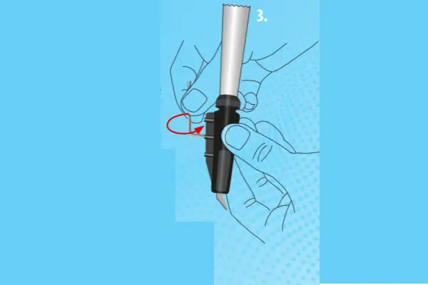 Spets som skruvas fast direkt i staven när olyckan är framme. Verktyg medföljer.